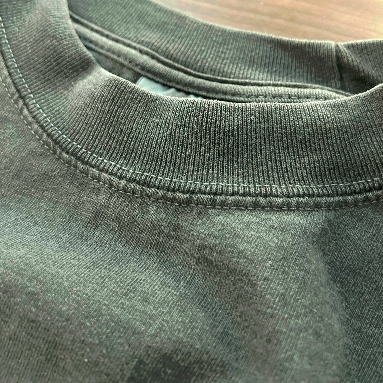 「ガーメントダイ(製品後染め)」という加工で、ヴィンテージTシャツのような風合いです。