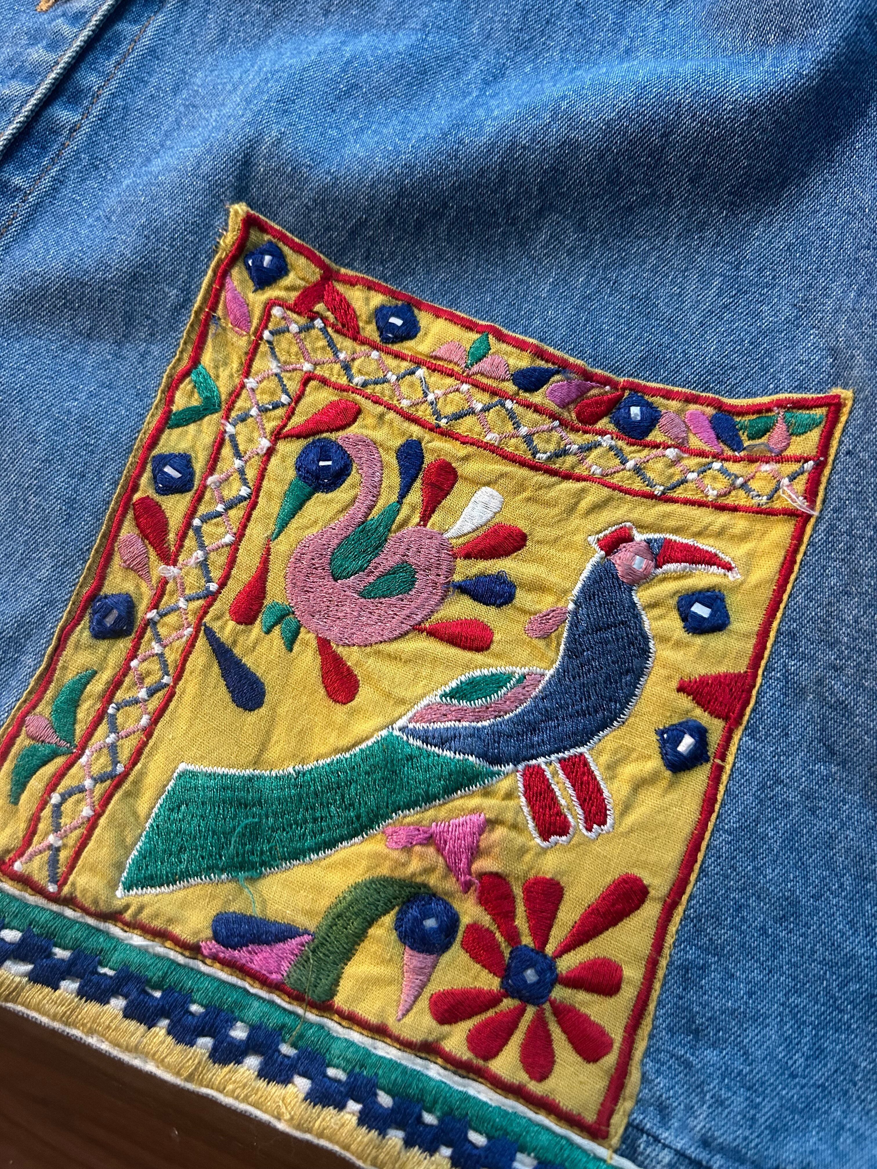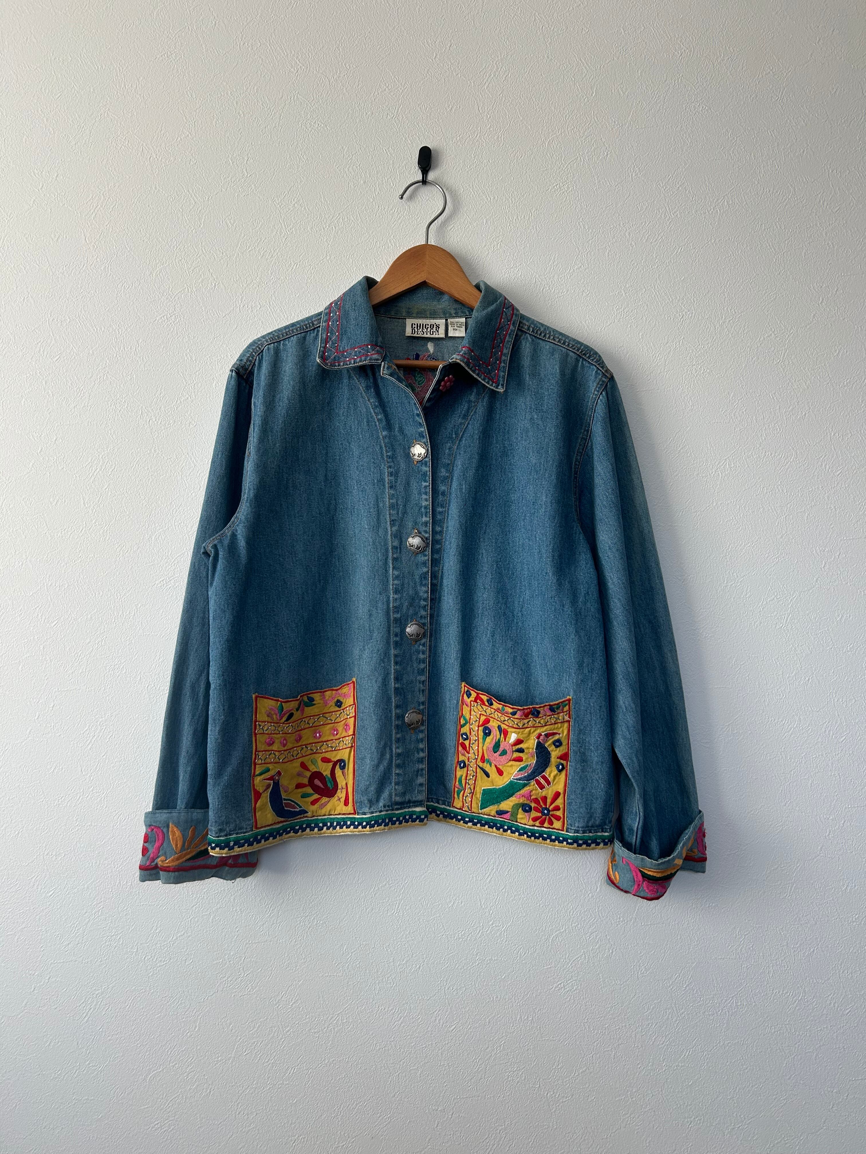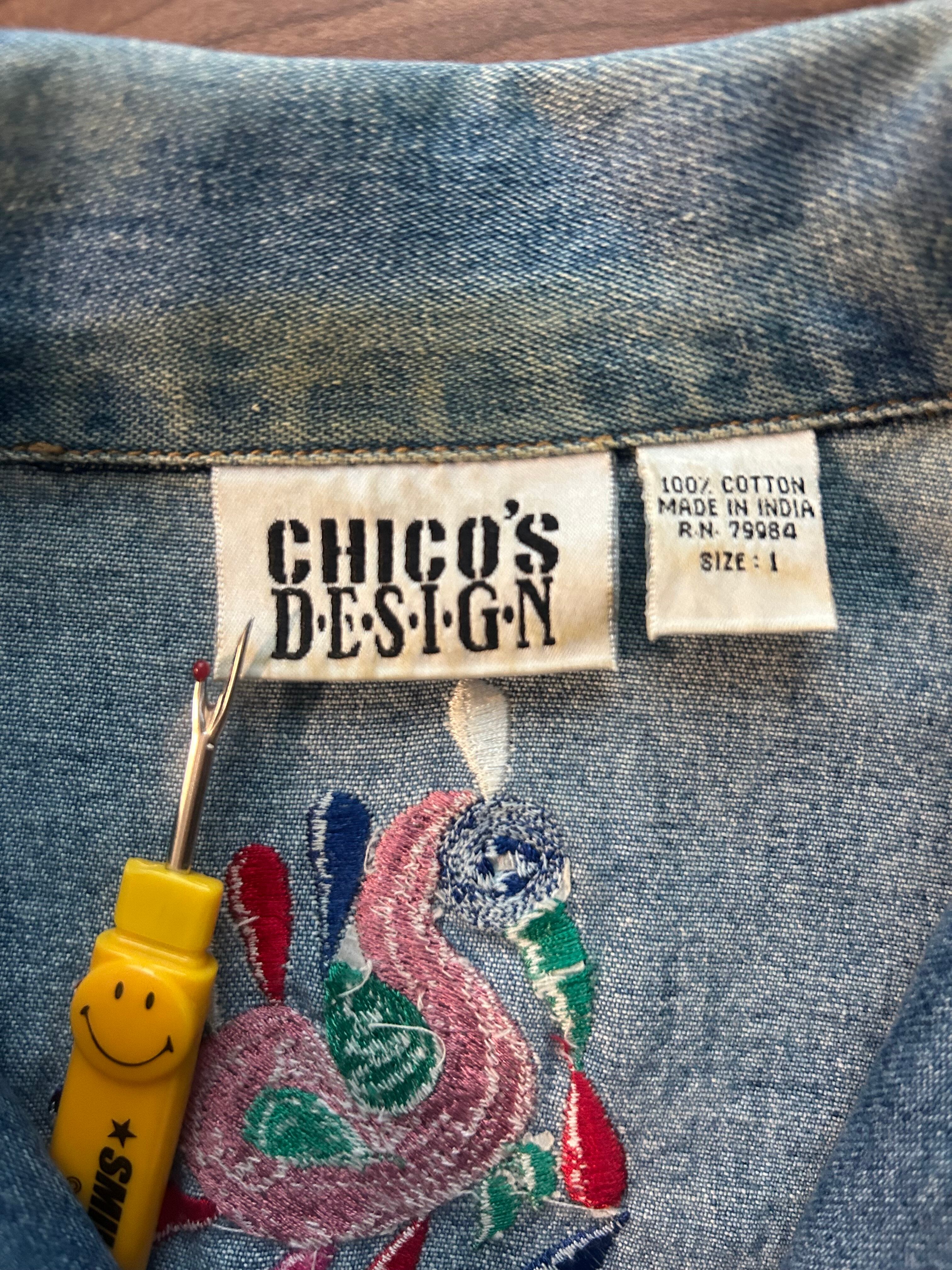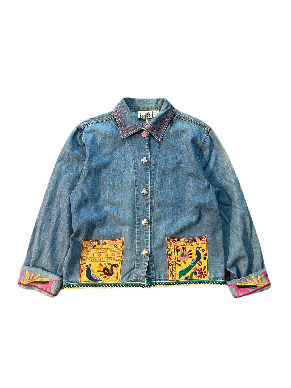 CHICO'S DESIGN / チコズ デザイン size:S〜M 80〜90s 刺繍 レディース デニムジャケット 民族 ネイティブ カバーオール