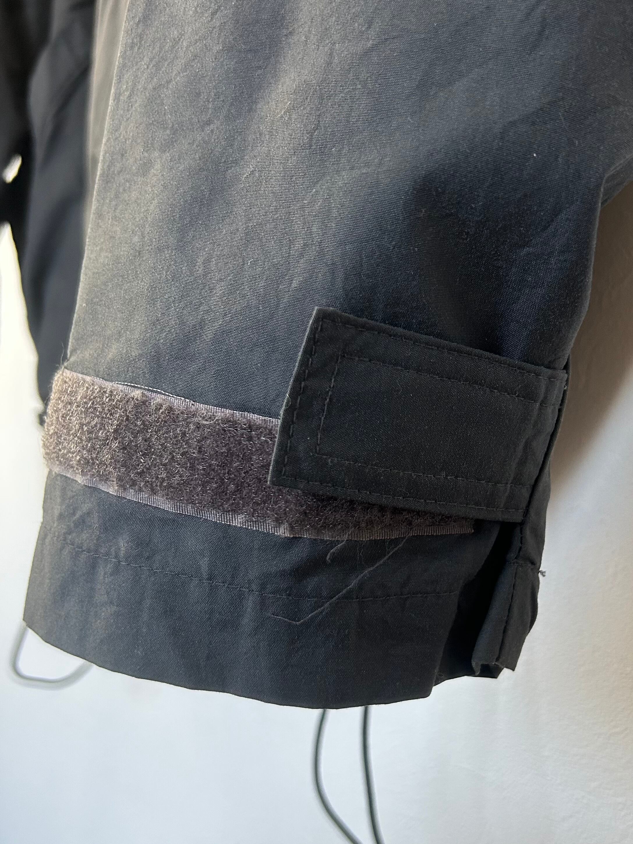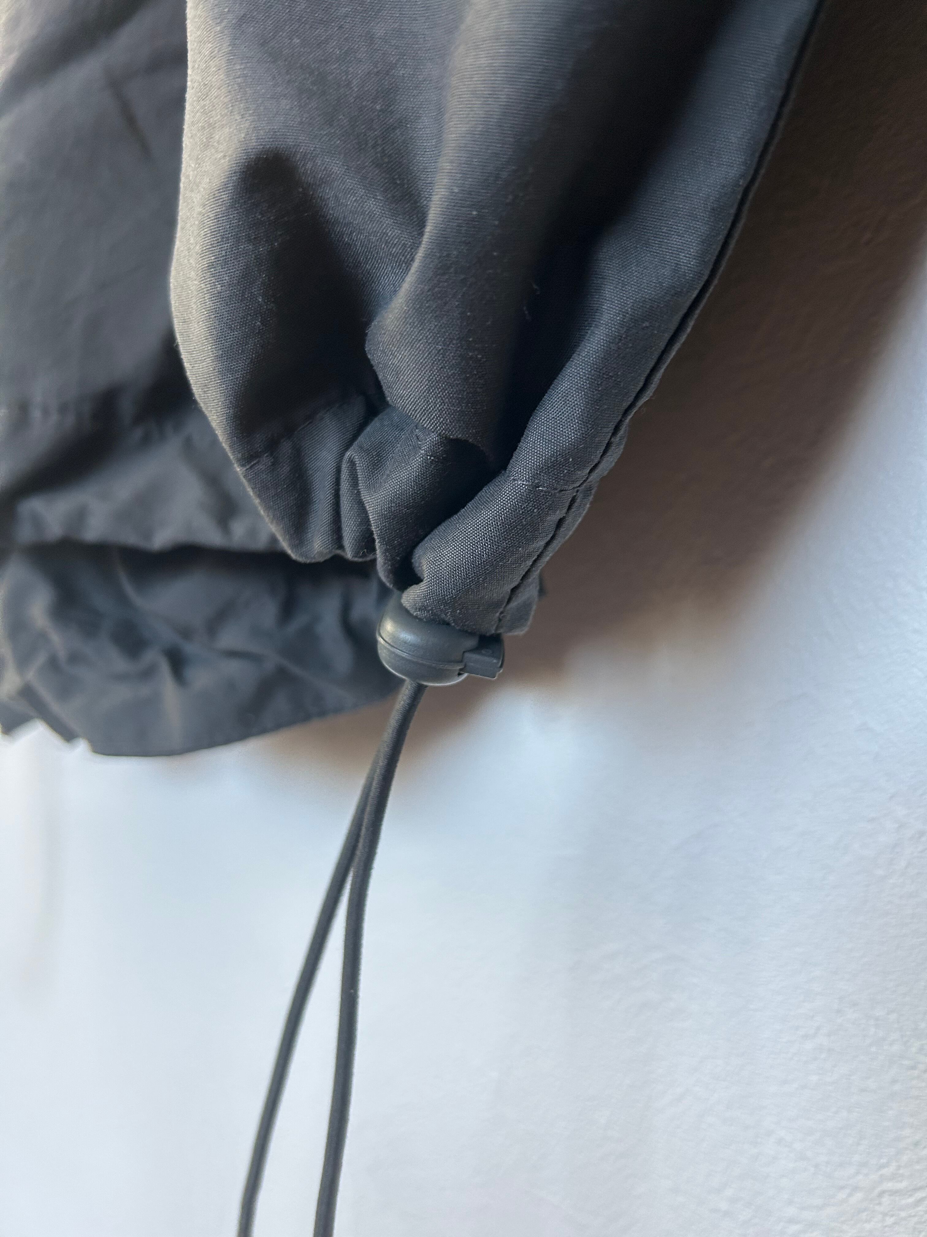 裾の両端にはドローコードが付いているので、絞って着ることもできます。