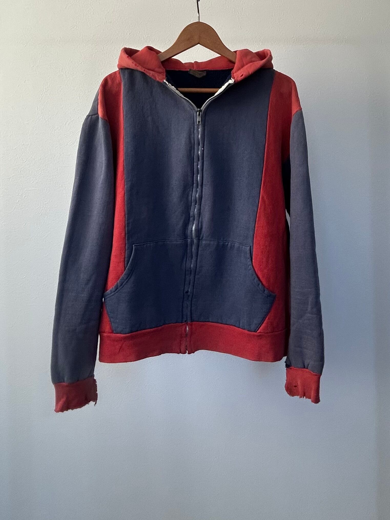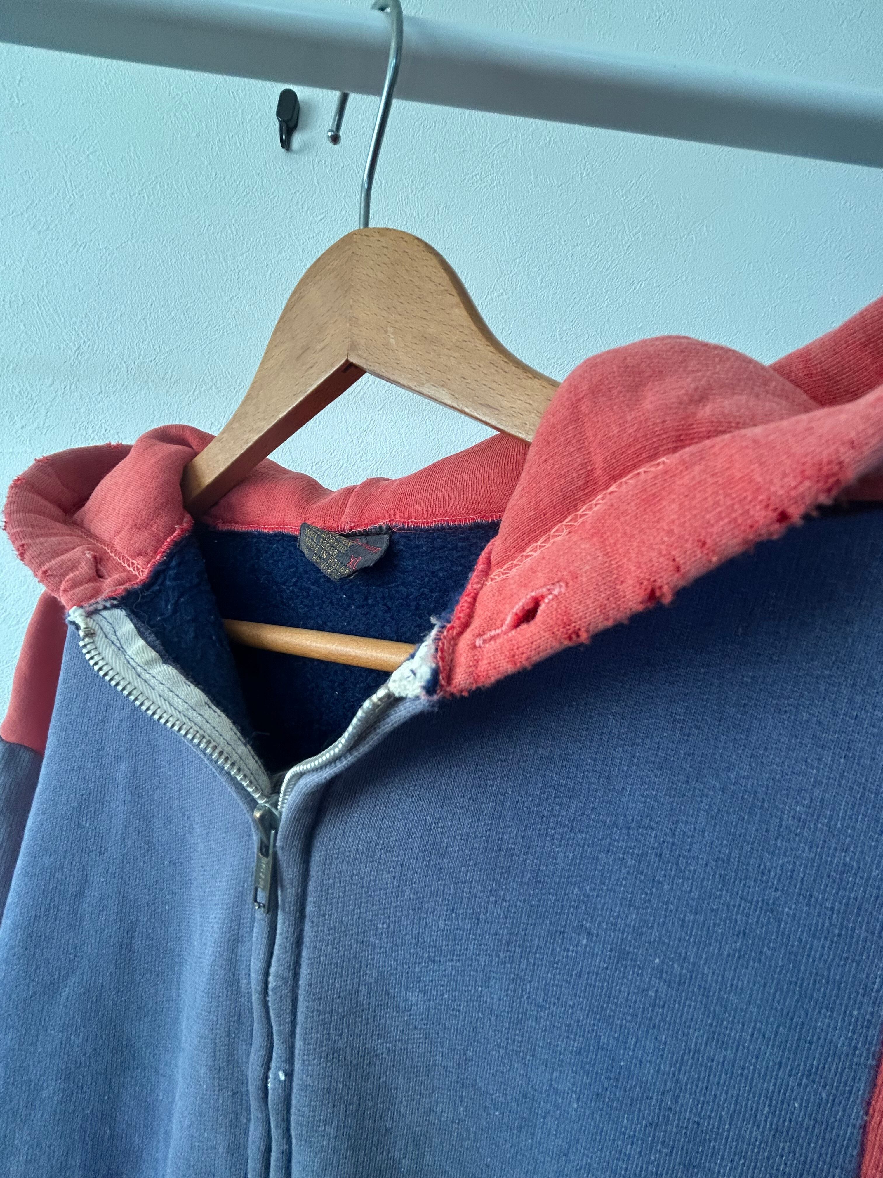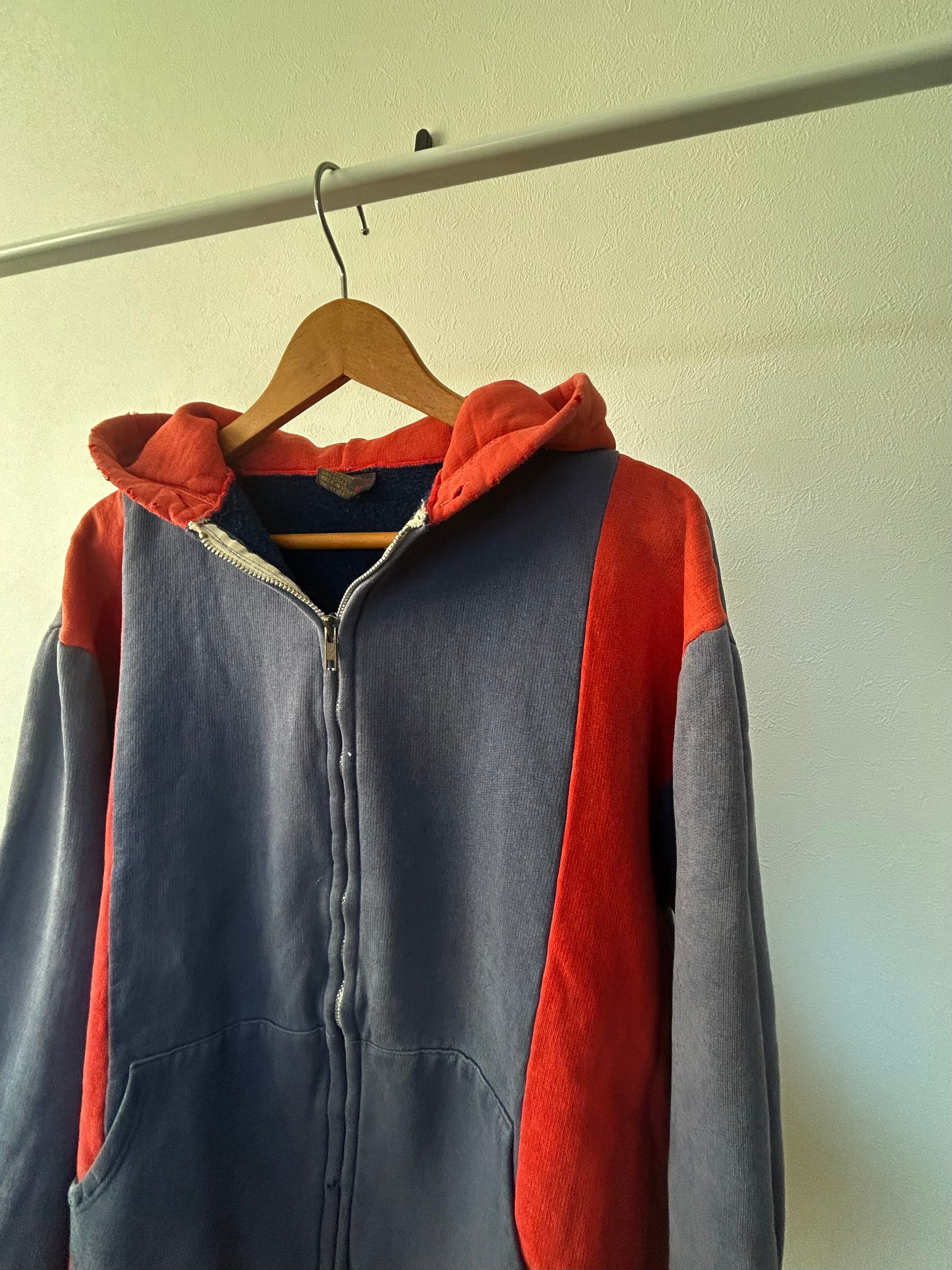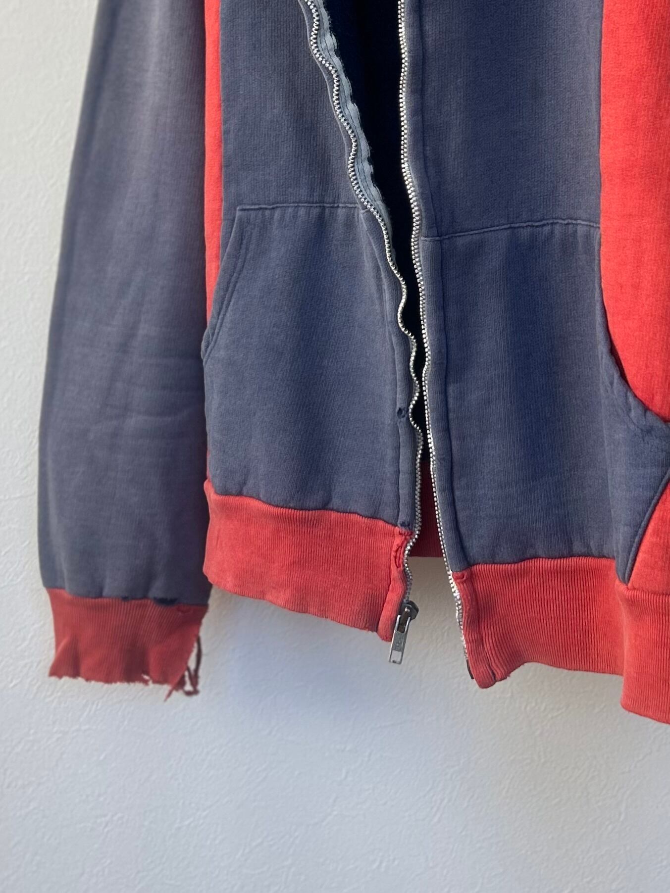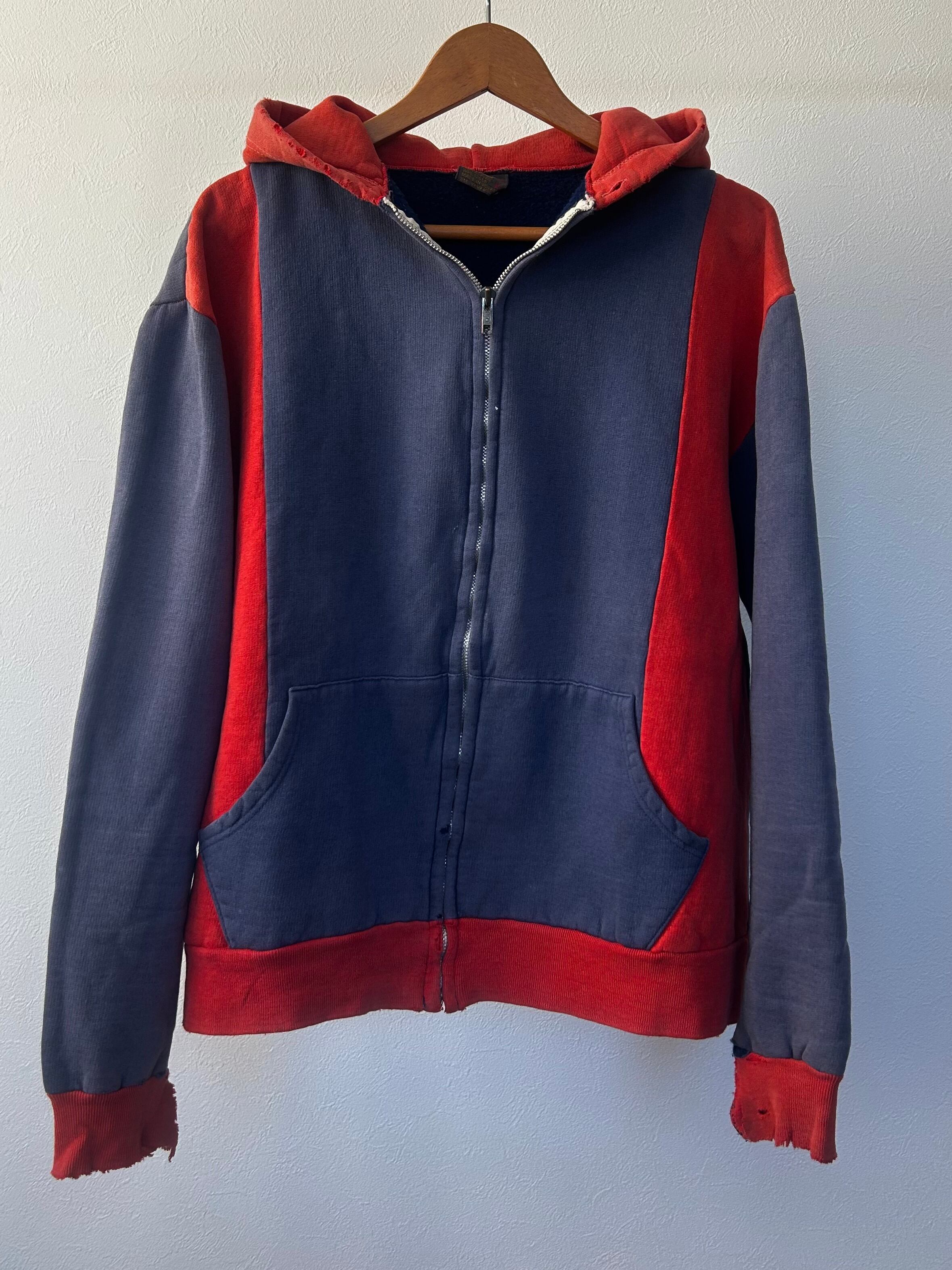 【70s】EURO two tone zip-up hoodie sweat ポーランド製 フルジップ パーカー ツートン
